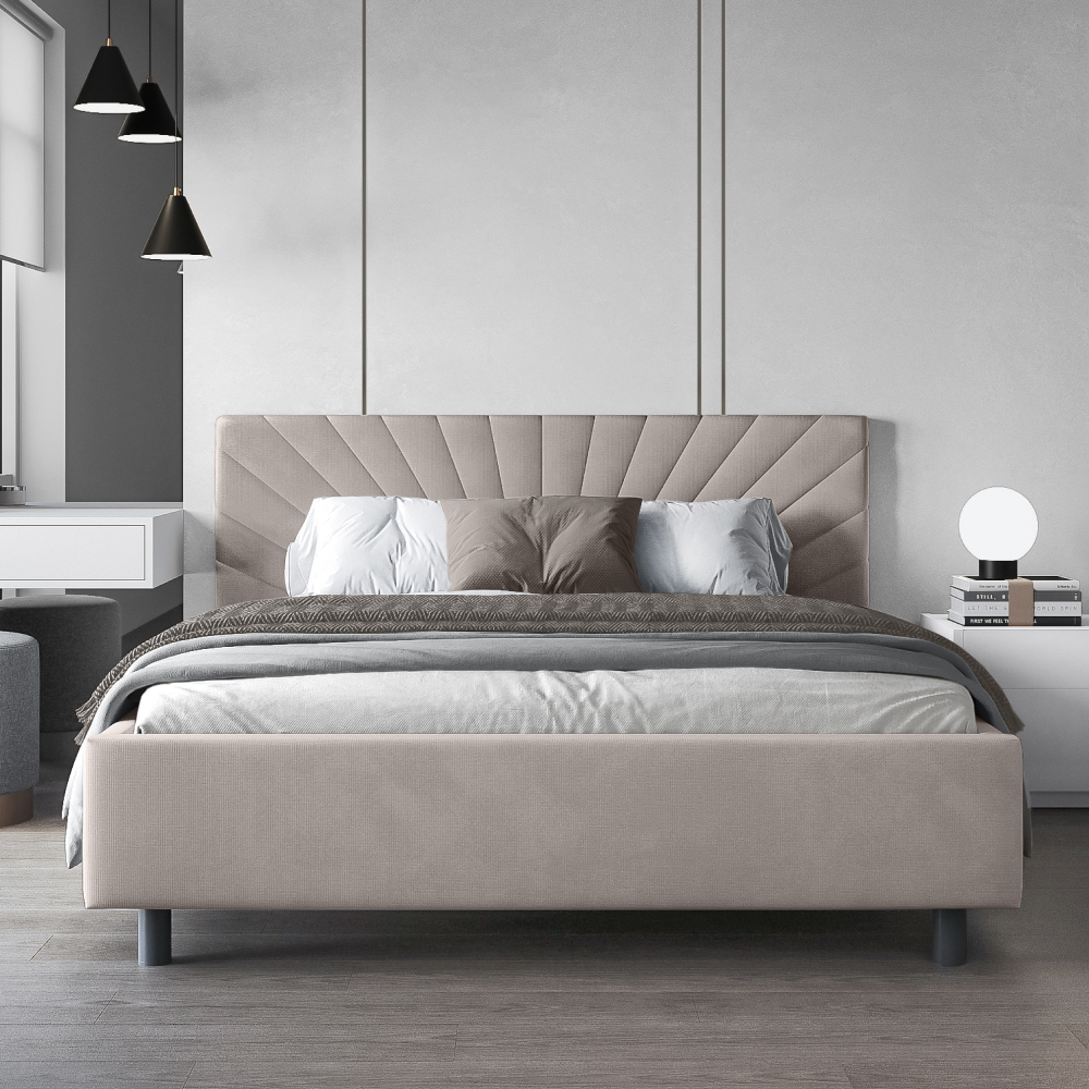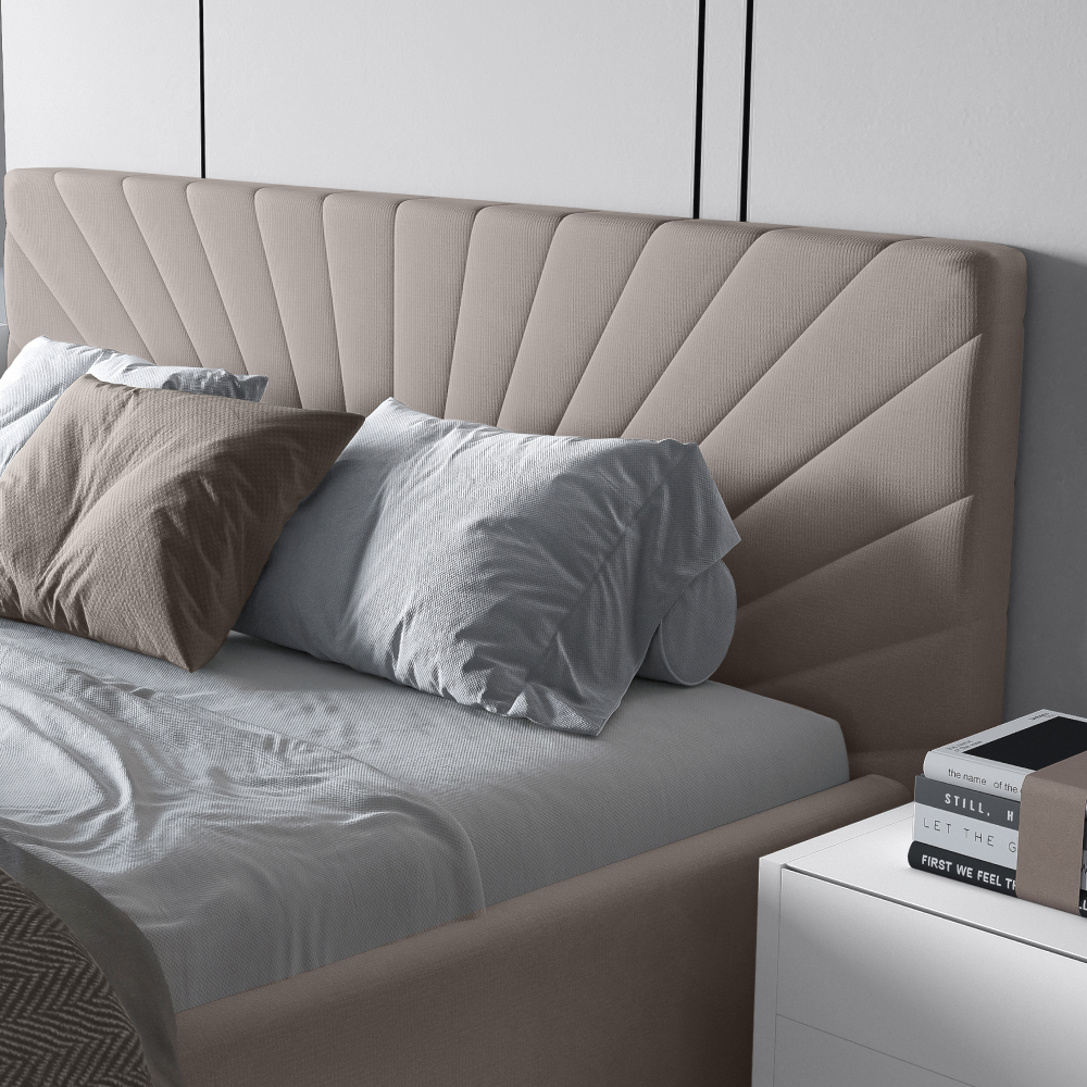 Кровать «Miranda» в минималистичном стиле принесет комфорт и уют в спальную зону. Деликатная строчка на изголовье в форме исходящих лучей смотрится лаконично и стильно.