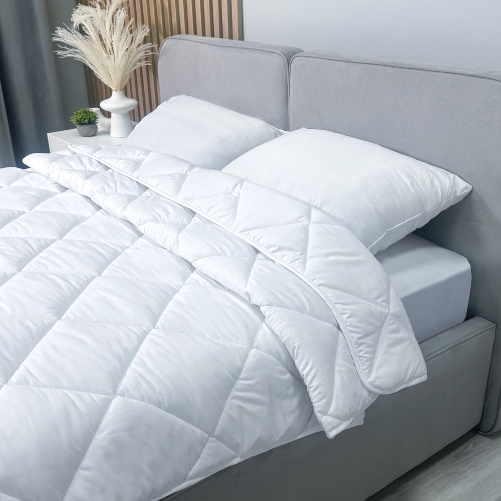 Всесезонное одеяло обеспечивает комфортный теплообмен, а также сохраняет свои первоначальные свойства и форму после многократной эксплуатации.